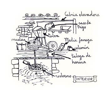 moler o triturar el grano los molinos tenían dos